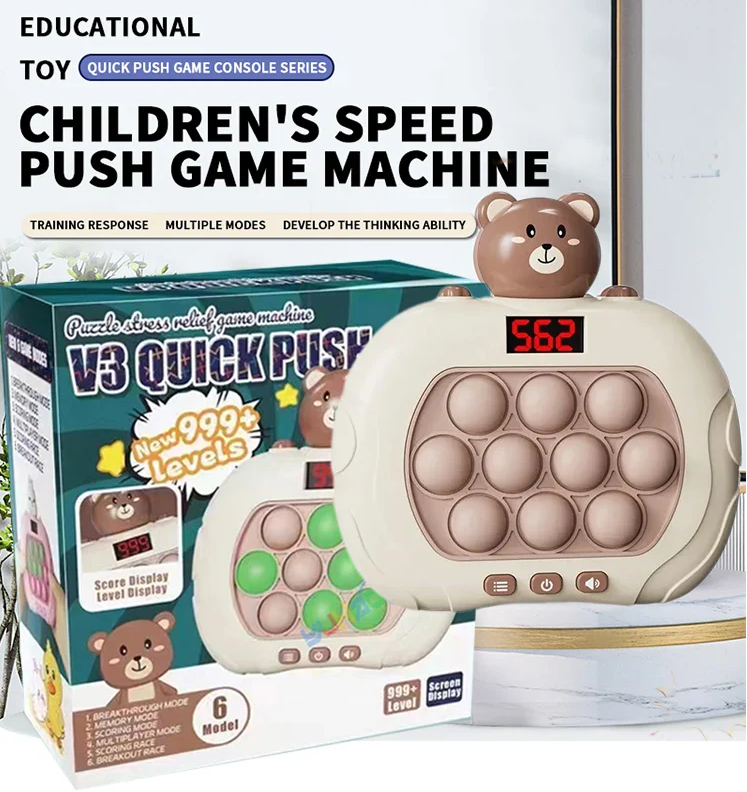 Bear Design Fast Push Retro Game Console, Speed Pushing Game For Kids, Educational Sensory Fidget Toy, Fun Gift for Adult and Child Fidget Toys Christmas